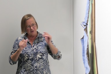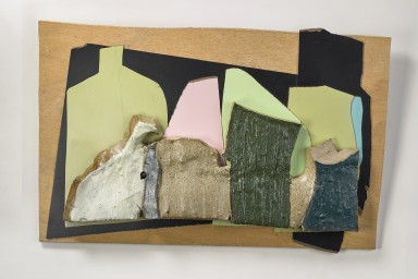 forme. Ghislaine Vappereau œuvre avec des matériaux divers aux surfaces planes et découpées, qu’elle ajuste ou superpose.