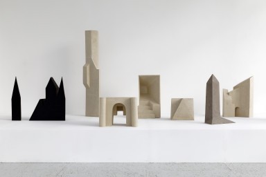 Une idée se conçoit, se développe et devient projet construit. Les cinq artistes tracent des figures, édifient, assemblent des éléments constituant des constructions. Valérie Delarue dessine sur papier et sculpte la terre en formant des ensembles. Hélène Delépine