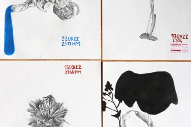 s’attache aux lignes de construction, qu’elles soient inscrites sur le papier ou modelées. Hélène Mougin pratique le dessin, le collage et le travail de la terre dans un dialogue permanent. Richard Nègre, cinéaste d’animation est adepte de la ligne tracée qui devient