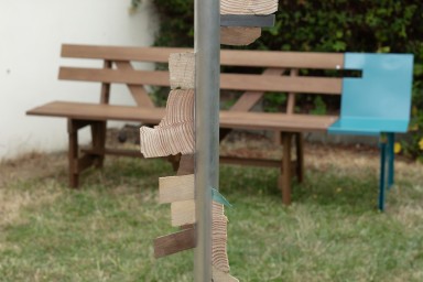 Pour cette édition anniversaire, quatre œuvres ont été produites pour l’espace public permettant de prolonger la rencontre avec les œuvres au-delà du week-end. À Athis-Mons, un ensemble de sculptures de Vincent Cardoso s’est déployé dans le jardin découvertes associatif Saint-Exupéry et Dans les yeux de Badine une table d’observation sensible imaginée par Edouard Sautai pour l’Esplanade des Grands Hommes devant la mairie est venue s’inscrire dans le panorama. À Juvisy-sur-Orge, l’œuvre monumentale et colorée Banjjak Banjjak réalisée à quatre mains par Soo Kyoung Lee et Élodie Boutry a pris place dans le parc de l’Observatoire Camille-Flammarion jusqu’en octobre et (…) et leurs reflets, fresque murale d’Audrey Perzo est venue clore un cycle sur le paysage en investissant un mur extérieur du jardin de l’École d’art.