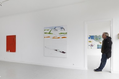 La peinture d’Olivier Marty oscille entre abstraction et figuration. Les titres de ses oeuvres fournissent de riches indications sur les lieux ayant inspiré ses toiles et orientent le regard du spectateur vers le paysage. Ainsi, l’artiste invite à la contemplation d’une fenêtre ouverte sur le monde. La surface des toiles n’est jamais saturée, un point de fuite est toujours offert comme une échappée vers un ailleurs. De ces images se dégagent un rythme. L’espace est scandé telle une carte ou encore une partition.