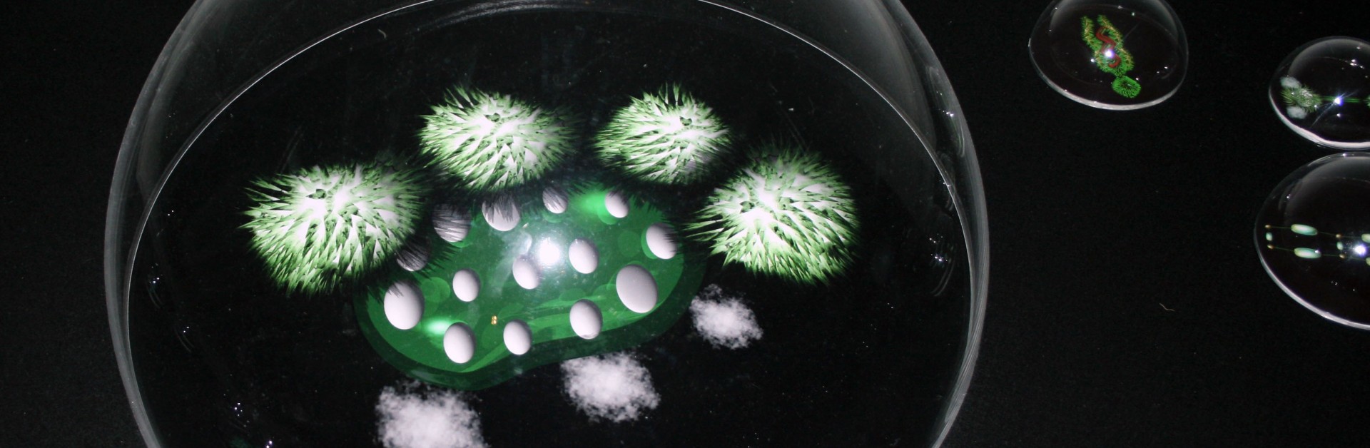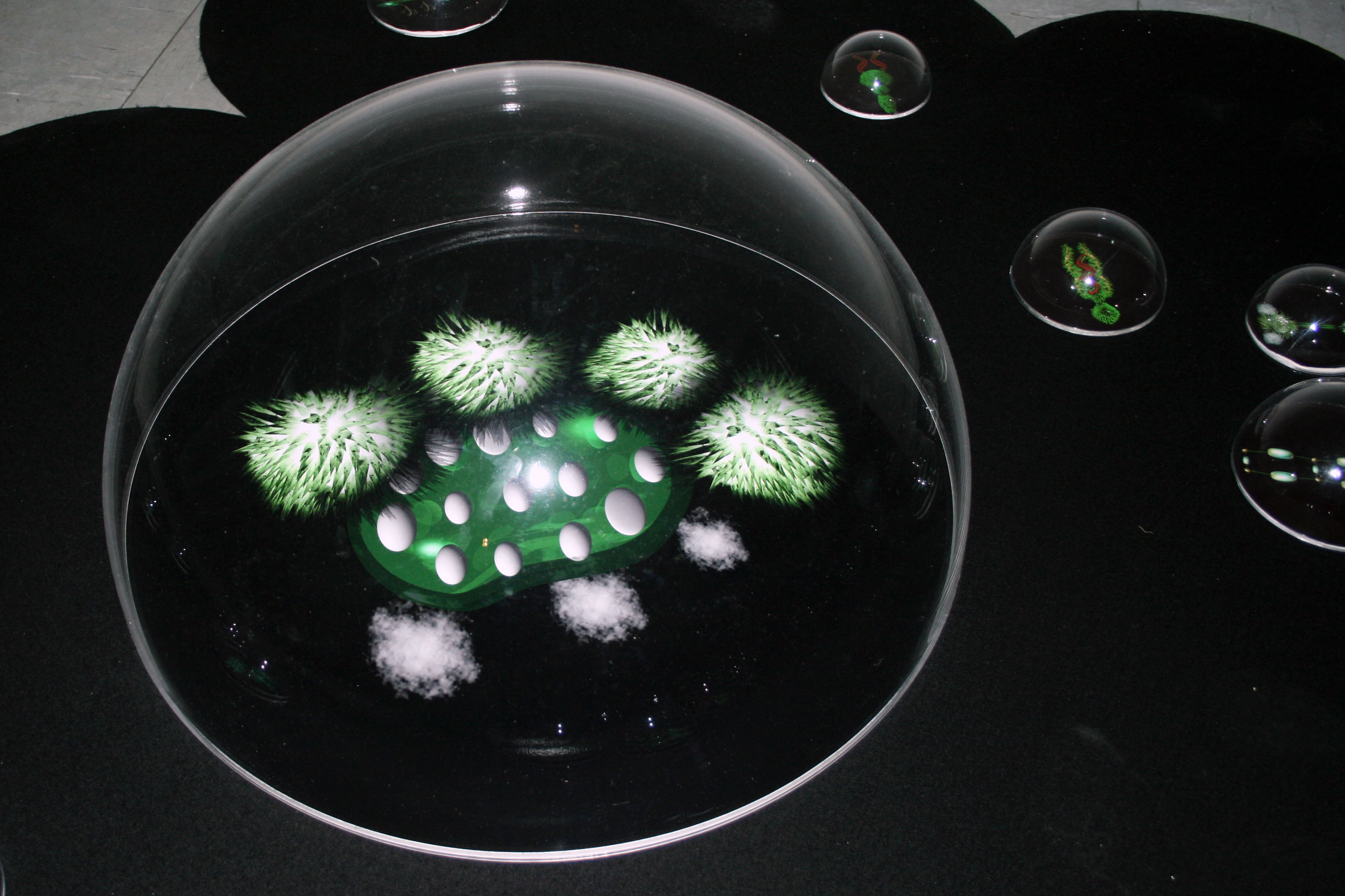 Au sein de l'exposition cohabiteront diverses créatures virtuelles issues de l'univers de Catherine Nyeki. Une installation de Globulus, plantes animales constituées à partir de l'herbarium Mu herbier mises en observation sous incubateur, feront face à la présentation sur écran des diverses familles de cette classification où chaque "habitant" a reçu un nom: Pullula, Diplodoc ou encore Capsula. Ces créatures composent une "oeuvre-jeu" où des hybrides surgissent au gré de l'exploration du visiteur et se donnent à voir autant qu'à écouter. Les dessins cellula, travail plastique autour de la cellule souche, proposeront un écho artistique aux recherches actuelles en génétique cellulaire. De même, la vidéo Indy_gène, diffusée pour la première fois, présentera la transformation d'un corps garnis de greffes virtuelles en cellules étranges qui mutent en organismes non-identifiés.