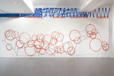 Aujourd’hui les amis seront : Chloé Dugit-Gros, Colombe Marcasiano, Sylvie Ruaulx, Edouard Prulhière, Philippe Richard et Peter Soriano, ce seront eux qui amèneront la couleur sur la trame, en écho avec leurs pratiques respectives. Chacun un mur, une vue de la ville de Juvisy-sur-Orge et carte blanche.