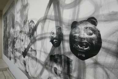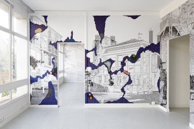 Aujourd’hui, il les montre en grand, en papier peint couvrant de haut en bas et de gauche à droite les murs de l’Espace d’art Camille Lambert à Juvisy-sur-Orge.
