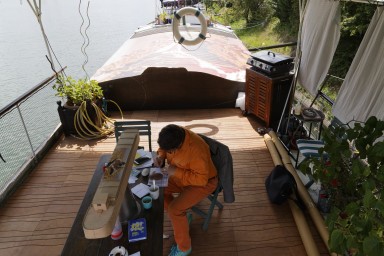 Mais son travail s’arrêtera là, il ne proposera pas ces projets dessus, il passera la main à ces amis artistes, ce qu’il fit si souvent par ces initiatives collectives afin de présenter le travail d’autres. Comme dès les années quatre-vingt à la galerie Image en milieu rural, avec la création de l’usine de Pali-Kao, dans son atelier pour les jours de la sirène, puis, avec Sylvie Ruaulx, pour les résidences 777 au château de Kerpaul, avec le bar du marché à Paris et maintenant avec utopies fluviales pour l’association barge.