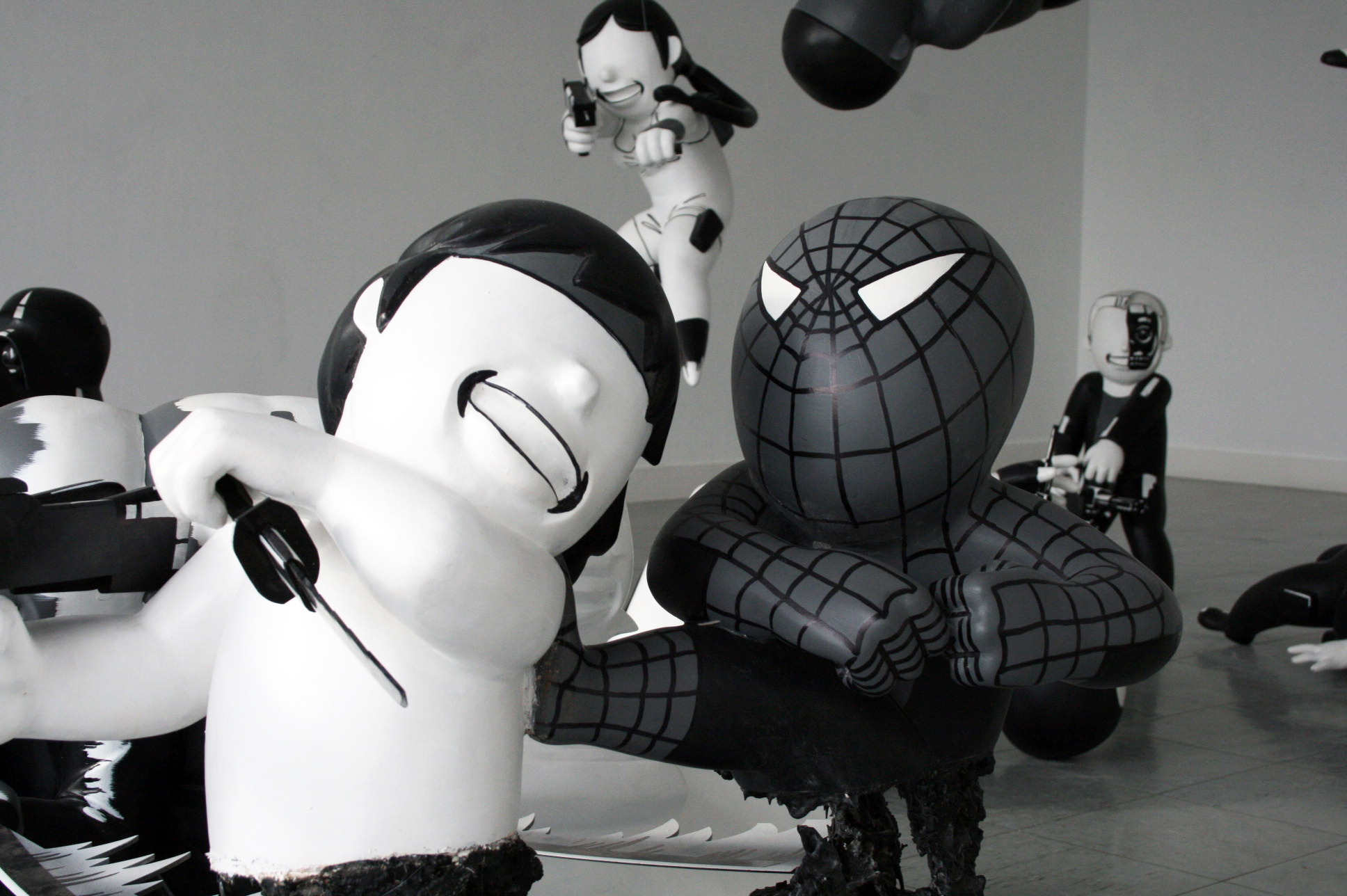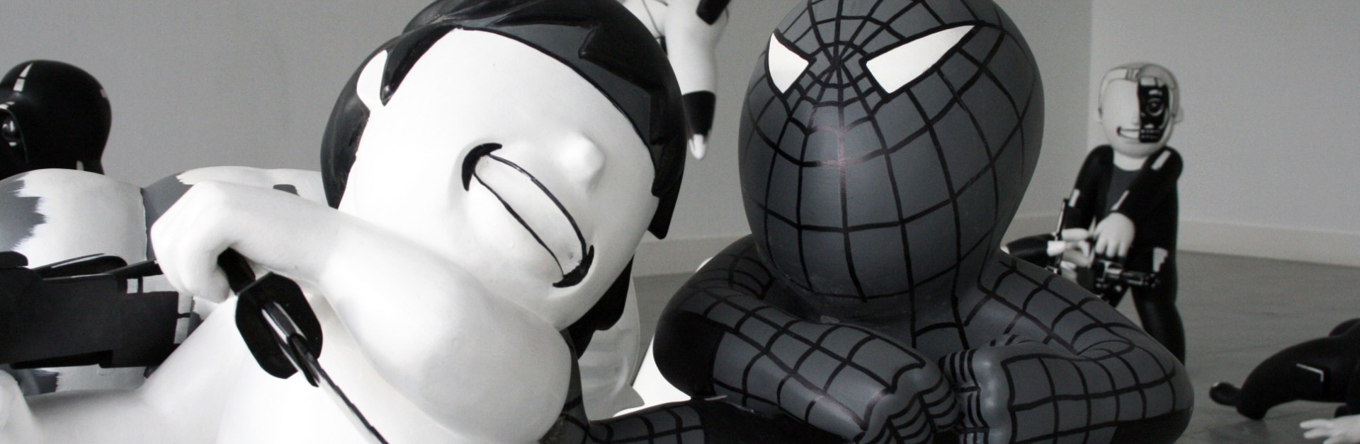 vidéos sont à la source de ses influences. Il exploite délibérément des personnages reconnaissables du public, toujours souriants. Wen Wen Xue s'interroge sur la prolifération des images réelles et sur la place du direct qui viennent satisfaire un besoin toujours croissant du regardeur devenu spectateur. Pour l'exposition à l'espace d'art Camille Lambert, Wen Wen Xue présentera un ensemble d'une vingtaine de sculptures issues de son panthéon de héros de bandes dessinées, mangas ou comics.